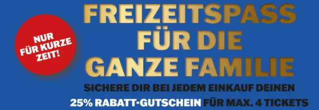Sichere Dir bei Deinem Einkauf in einer KiK- Filiale einen von 5 Mio Coupons und erhalte mit diesem Coupon 25% Preisnachlass auf bis zu 4 Online- Tickets in einer der 22 teilnehmenden Attraktionen der Merlin Entertainments Group. Der auf Deinem Aktions-Kassenbon angegebene Rabattcode kann über den auf diesem Foto angegeben QR-Code oder direkt auf www.merlinaktionen.de/kik einmalig eingelöst werden. Den Aktions-Kassenbon erhältst Du nach Deinem Einkauf an der Kasse. Die Aktion beginnt am 14.04.2025 und endet mit der Herausgabe des letzten Coupons, jedoch spätestens am 10.05.2025. Die Codes sind einlösbar bis Ende der Saison 2025, bzw. 31.12.2025. Veranstalter der Aktion ist die Merlin Entertainments Group. Die AGB der Merlin Entertainments Group sind einsehbar unter www.merlinaktionen.de/rechtliches/agb/kik/.